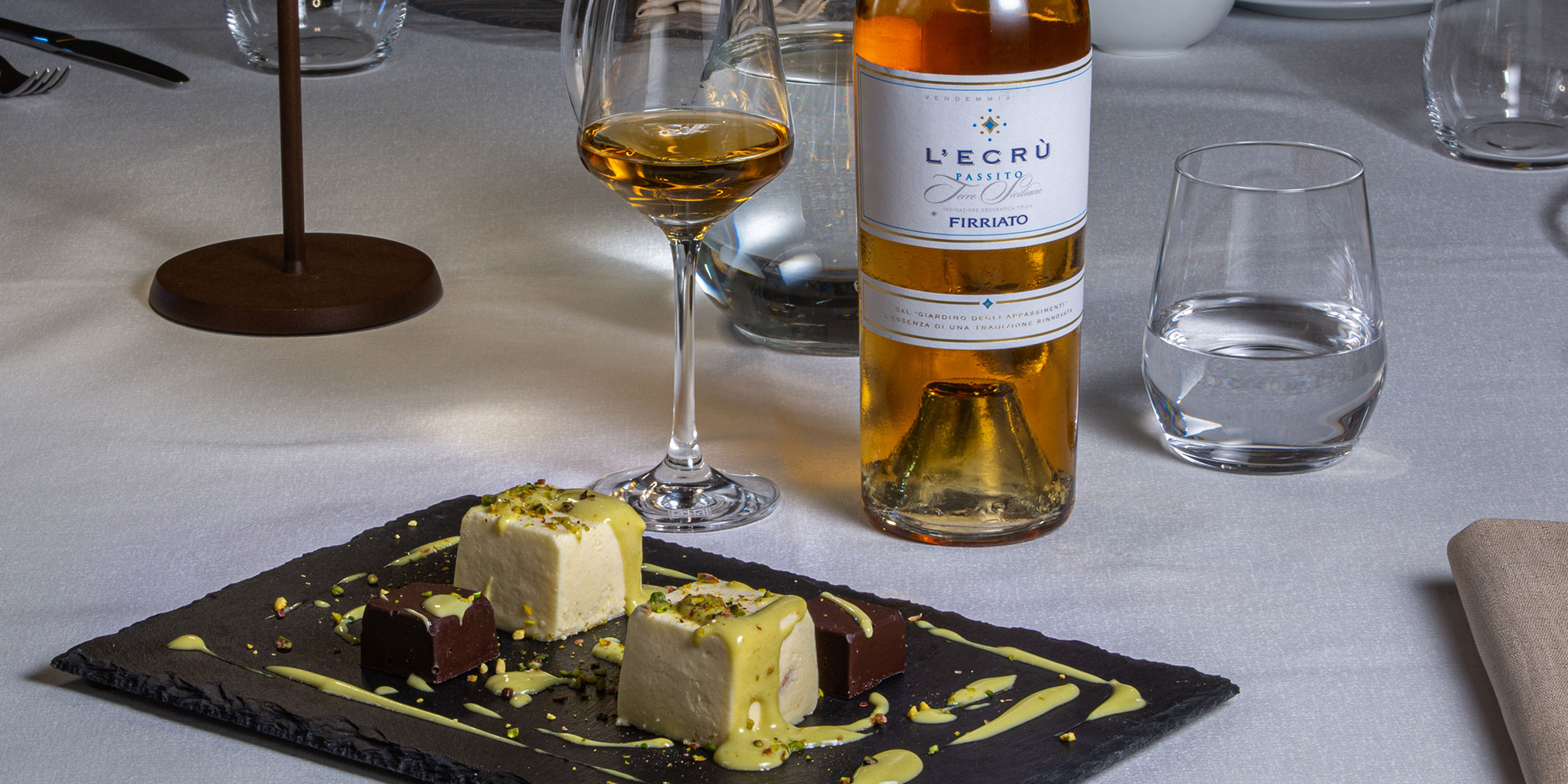 L’Ecrù Passito NaturaleCubo di cremoso a L’ecrù con crumble al pistacchio e cioccolatino fondente